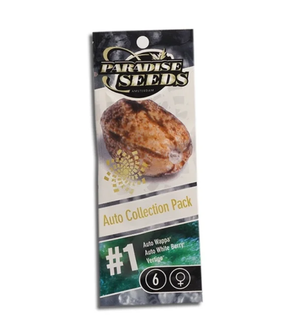 Auto Collection Pack №1 от Paradise Seeds — это тщательно подобранный набор из трёх автоцветущих сортов, каждый из которых отличается уникальным ароматом, эффектом и характером роста. В упаковке — по 2 семени Auto Wappa, Auto White Berry и Vertigo, что делает этот микс отличным выбором для тех, кто хочет попробовать разные автоцветы с проверенной генетикой от одного производителя.